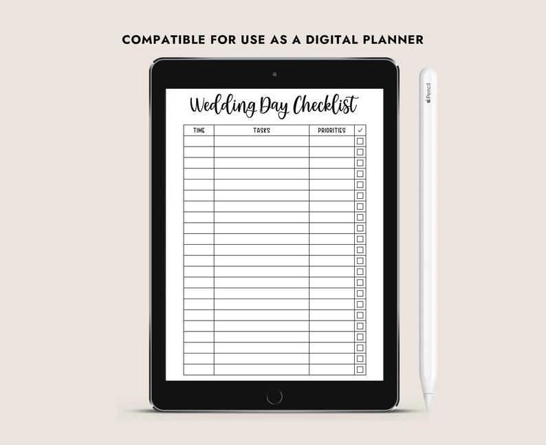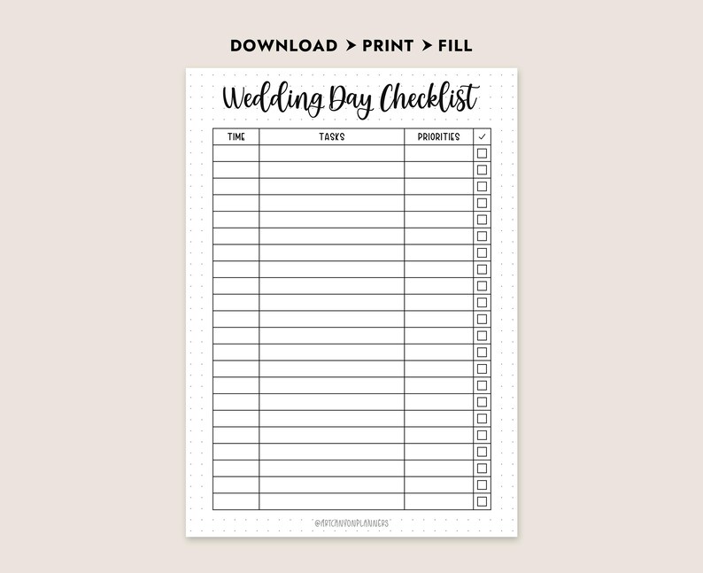 Wedding Day Checklist Printable Planner Instant Download A4 Letter A5