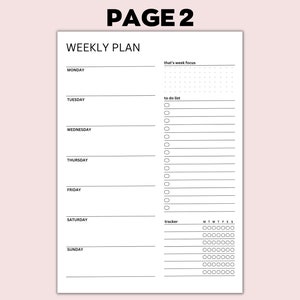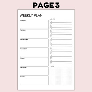Planner Printable Weekly Organizer Black and White Weekly Planner