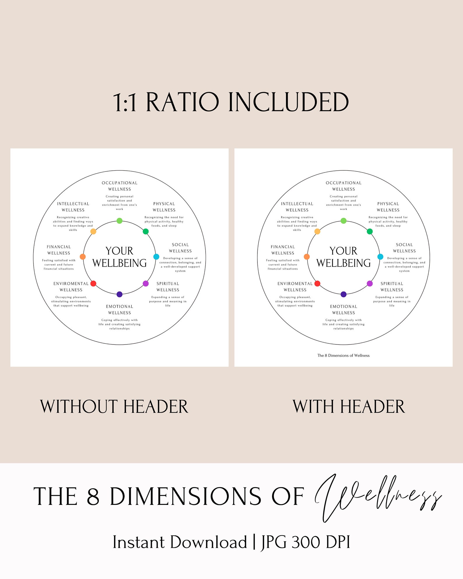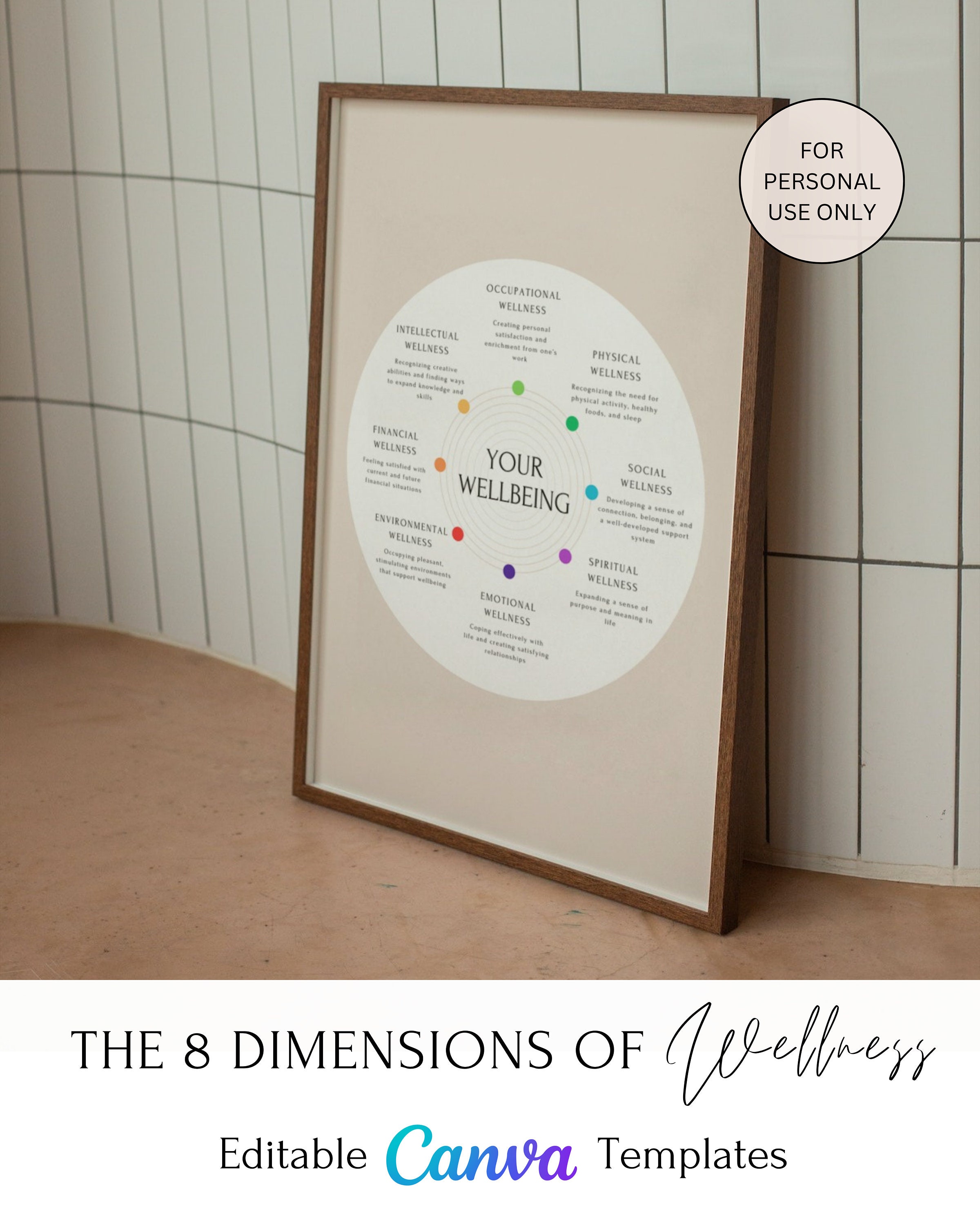 The 8 Dimensions of Wellness Wheel Canva Editable Template Mental