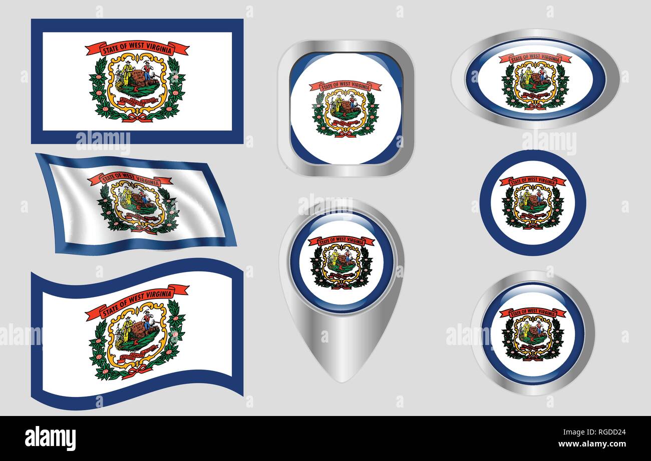 West Virginia Flag in Different Shapes Icon Set Showing the State S