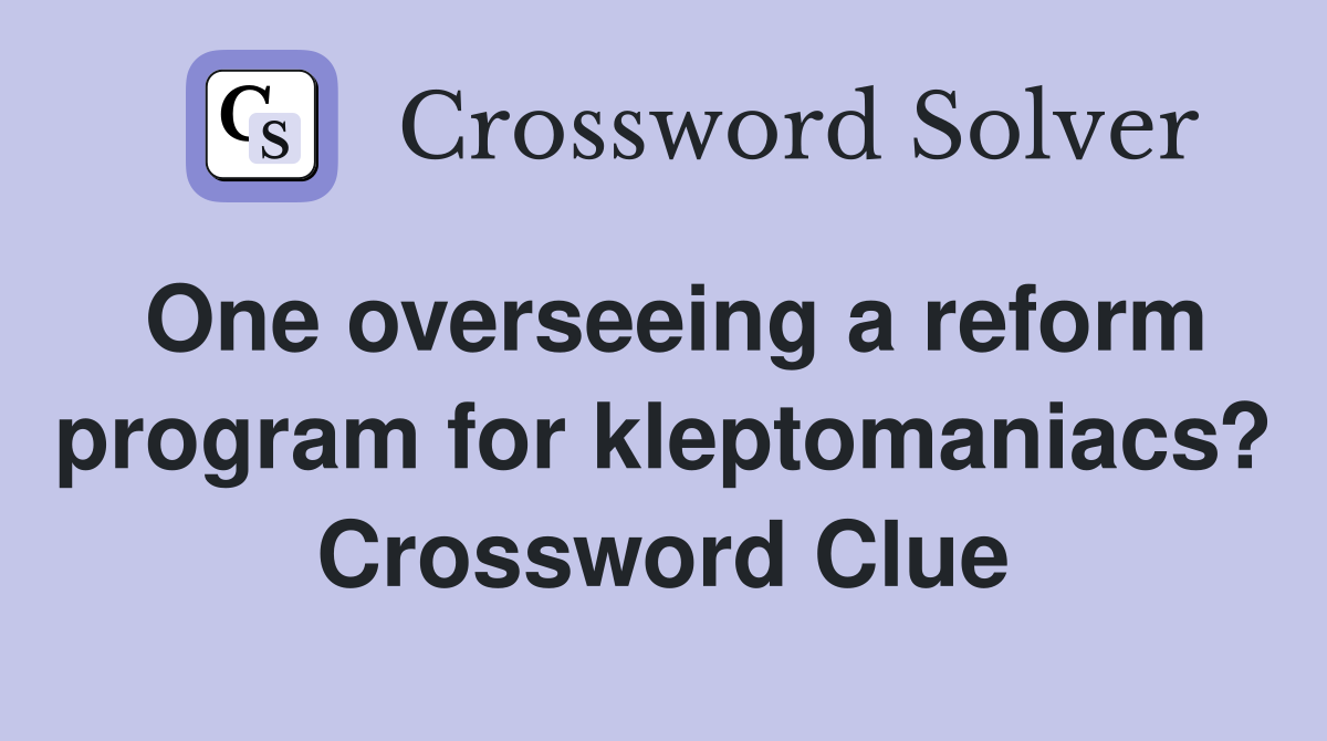One overseeing a reform program for kleptomaniacs? Crossword Clue