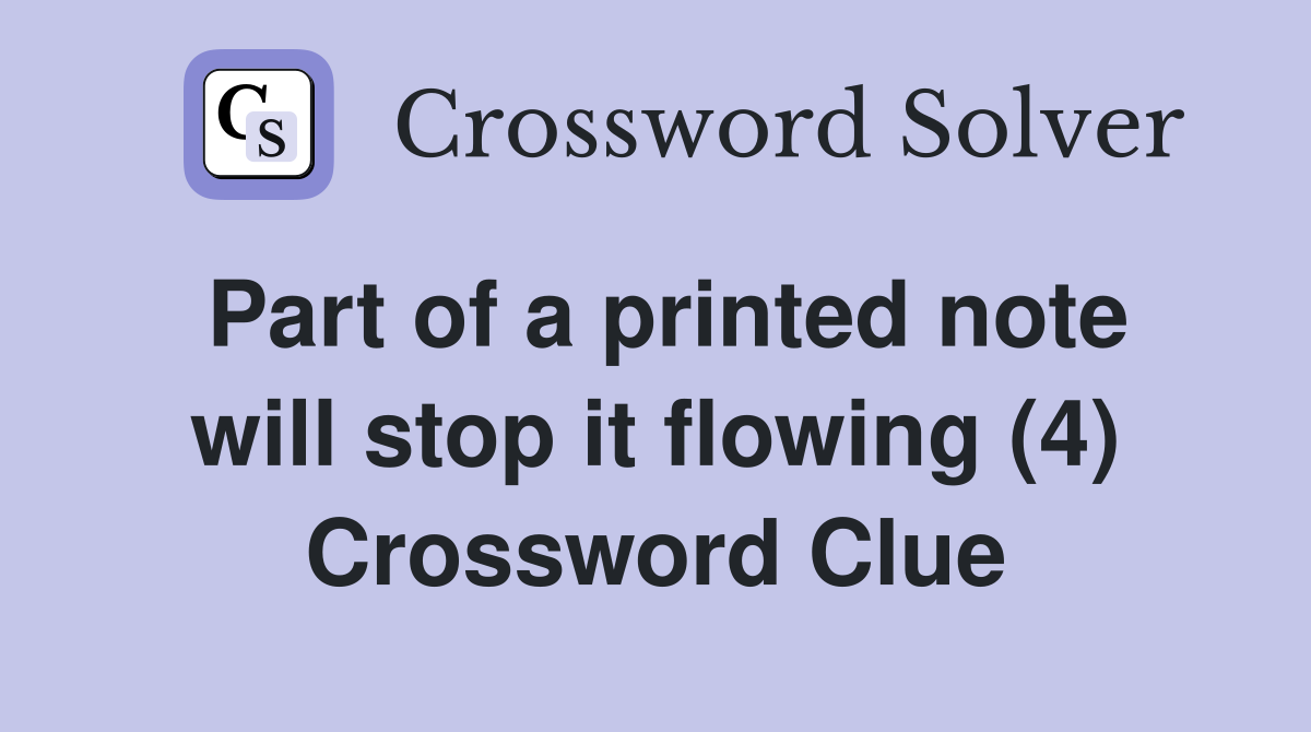 Part of a printed note will stop it flowing (4) Crossword Clue