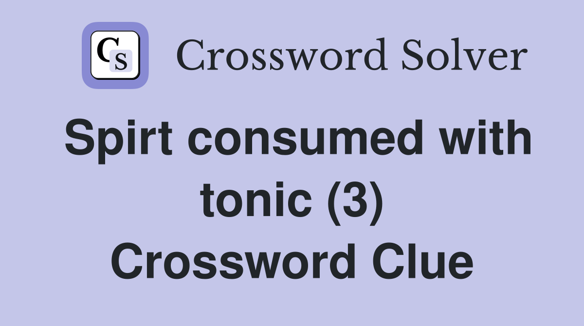Spirt consumed with tonic (3) Crossword Clue Answers Crossword Solver