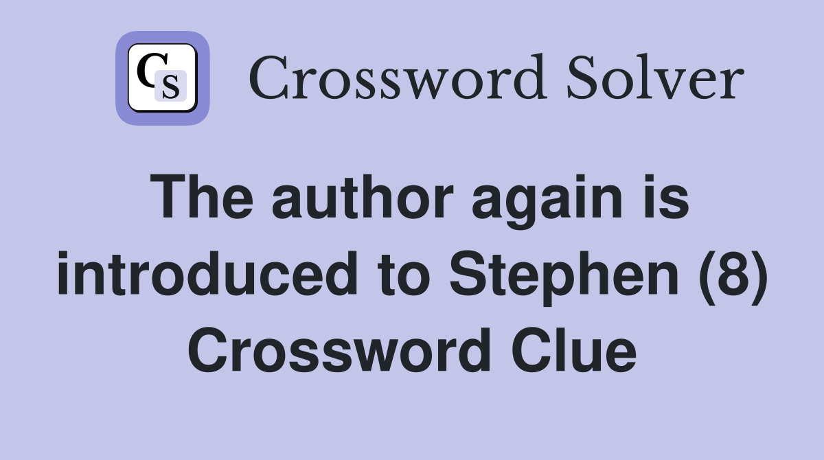 The author again is introduced to Stephen (8) Crossword Clue Answers