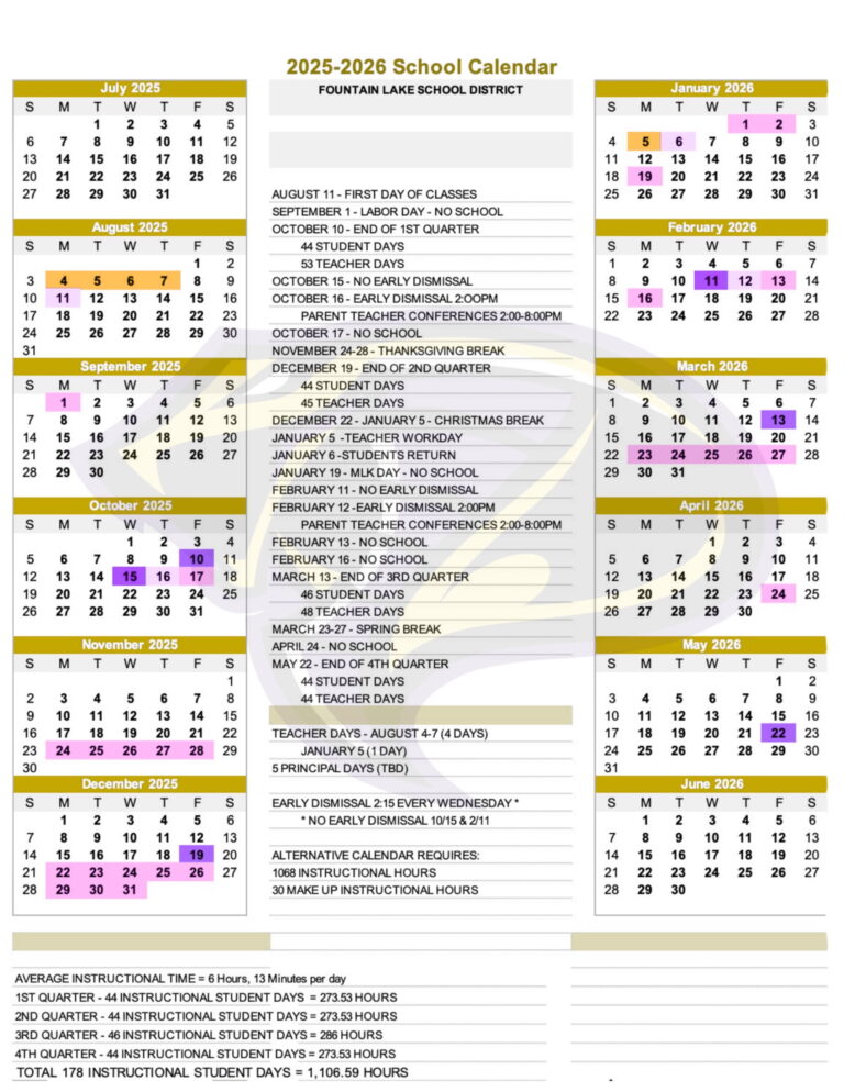 FOUNTAIN LAKE SCHOOL DISTRICT Calendar 25 26 Revised pdf EduCounty