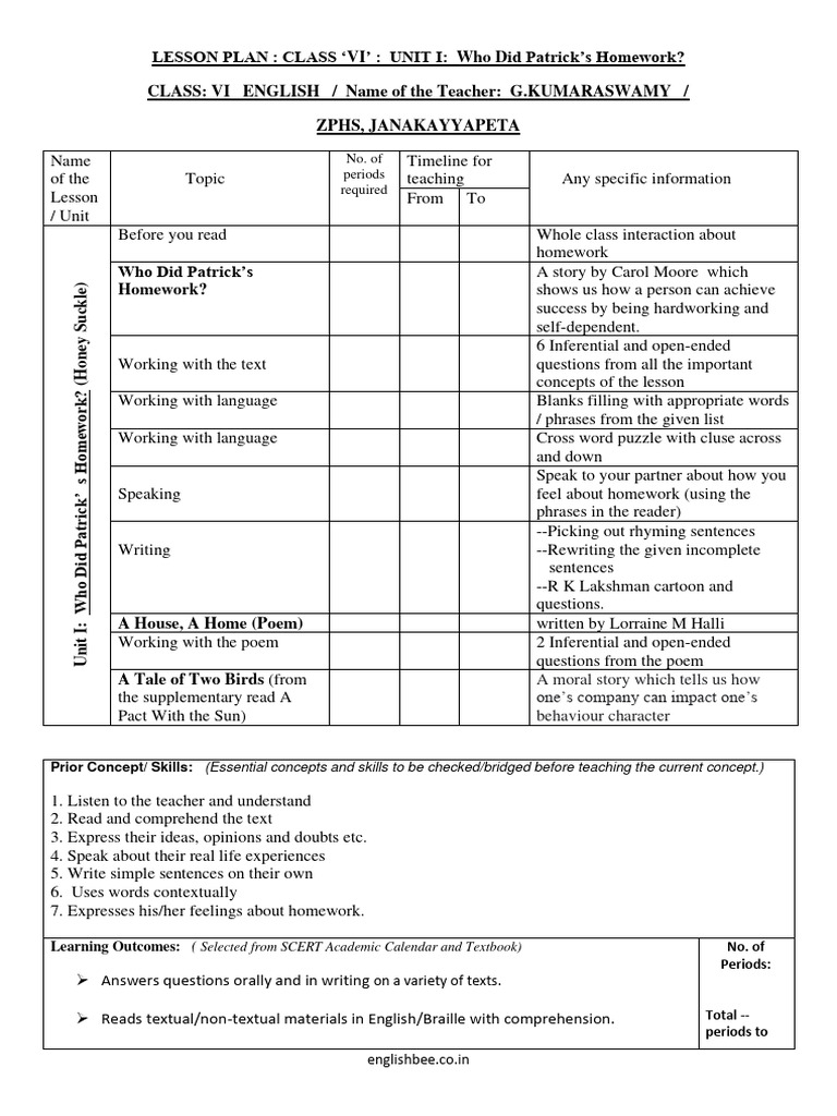 VI Class New Lesson Plan Unit I (2023 24) PDF Poetry Crossword