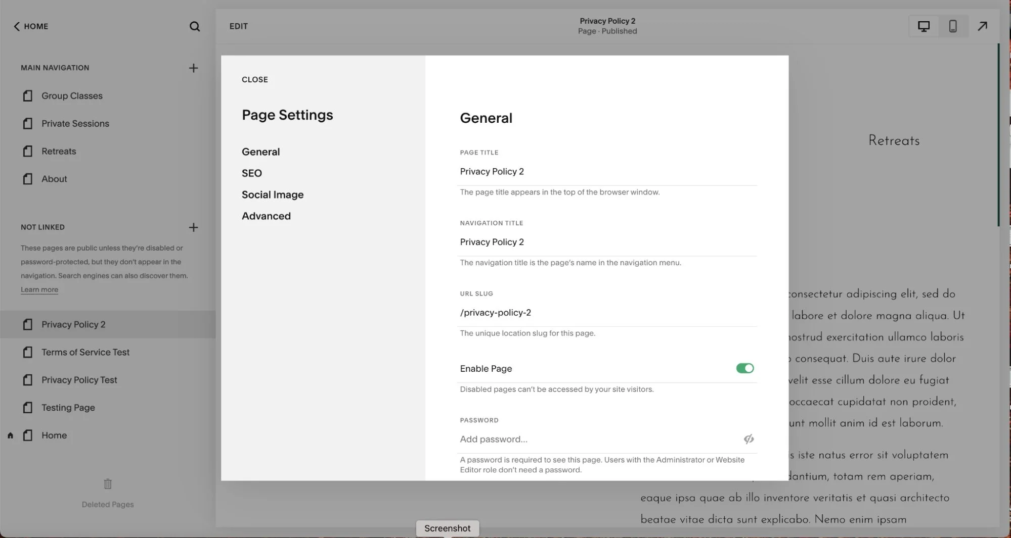 How to Add a Privacy Policy in Squarespace? Screenshots