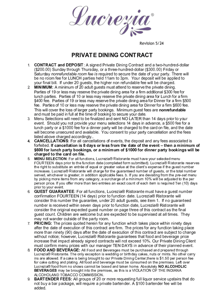 Here are some of the images for Private Dining Contract Template that we found in our website database.