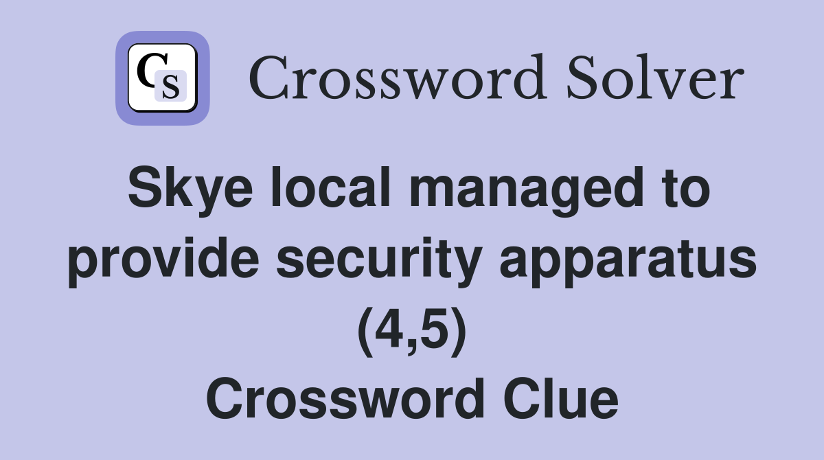 Skye local managed to provide security apparatus (4 5) Crossword Clue