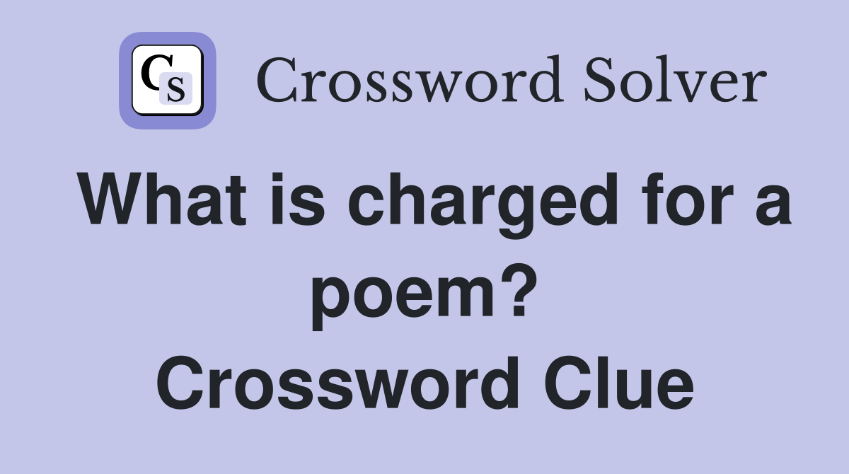 What is charged for a poem? Crossword Clue Answers Crossword Solver