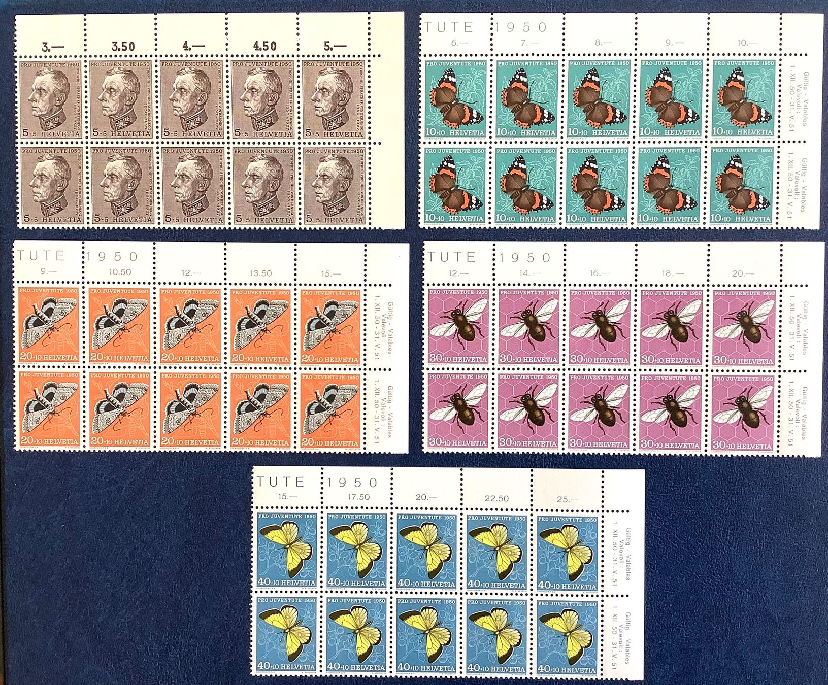 1950 / Pro Juventute 10er Block Satz ** mit Eckrand (Neu (gemäss