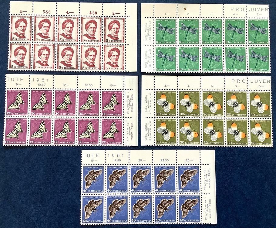 1951 Pro Juventute / 10er Blocke Satz ** mit Eckrand (Neu (gemäss