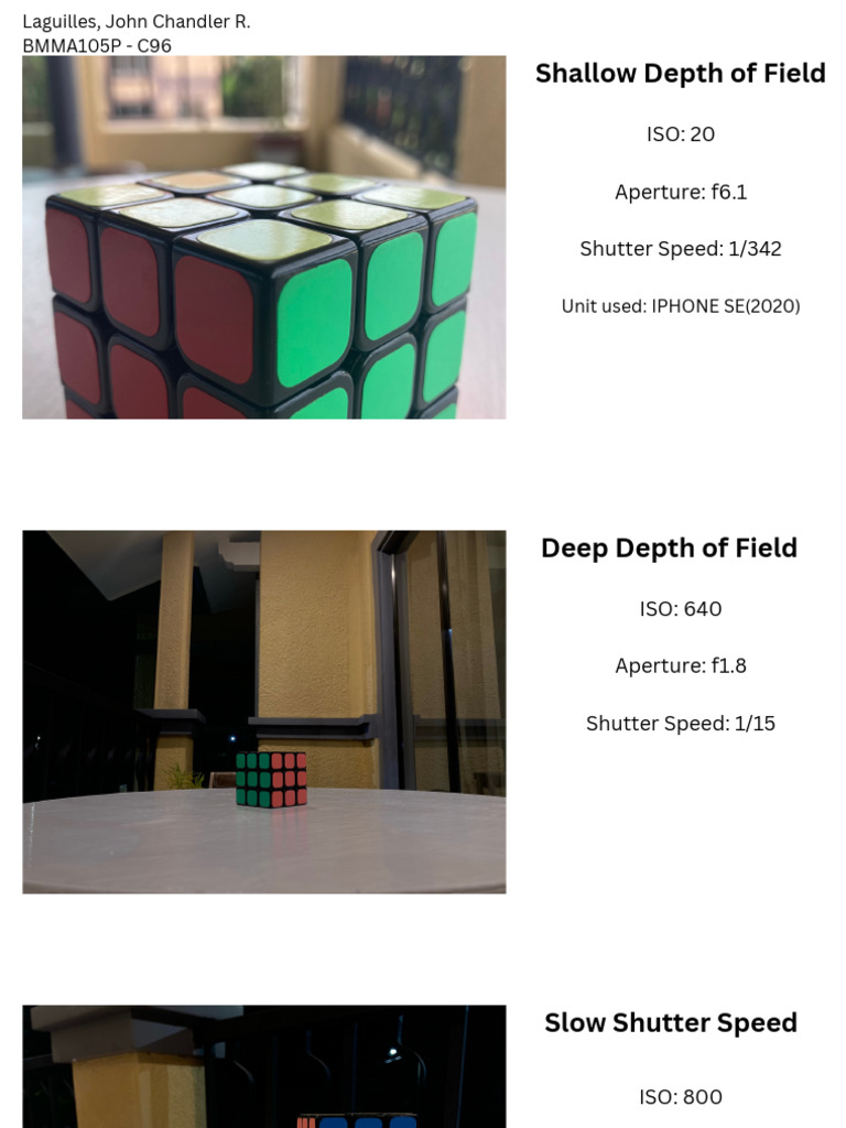 Photography Settings for Depth of Field PDF Games Activities