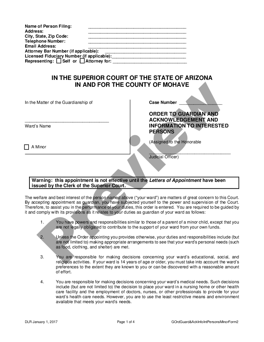 Phoenix Arizona Order to Guardian and Acknowledgement and Information