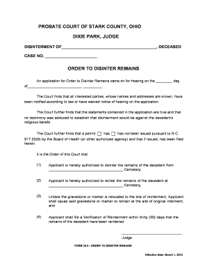 Fillable Online PROBATE COURT OF STARK COUNTY OHIO DIXIE PARK JUDGE