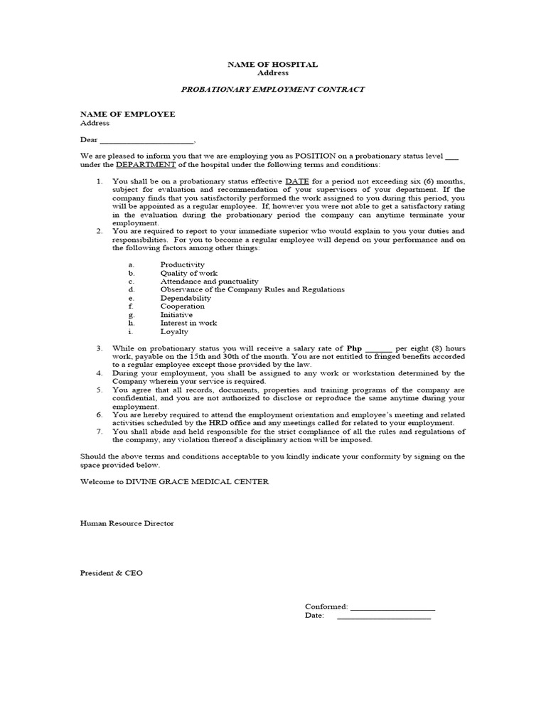 Probationary Contract Template PDF