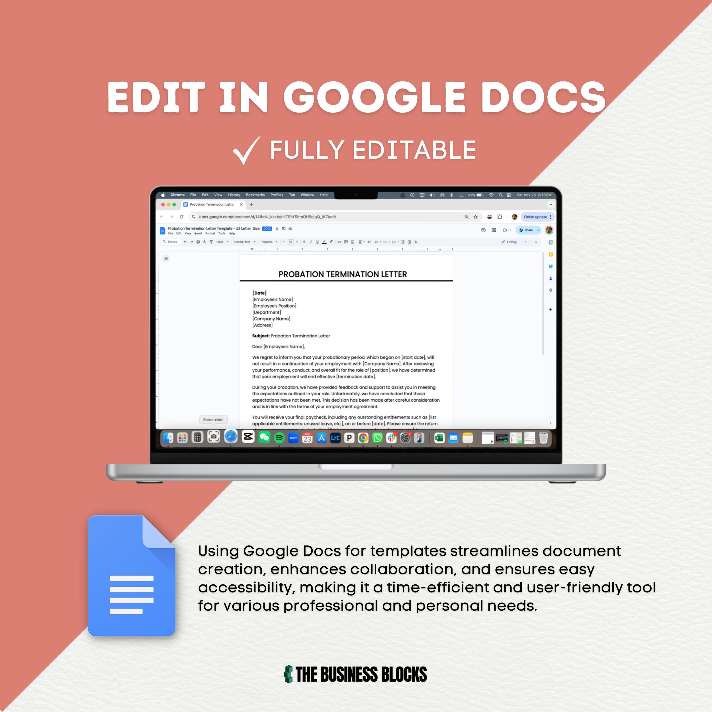 Probation Termination Letter Template: Editable HR Form (google Docs