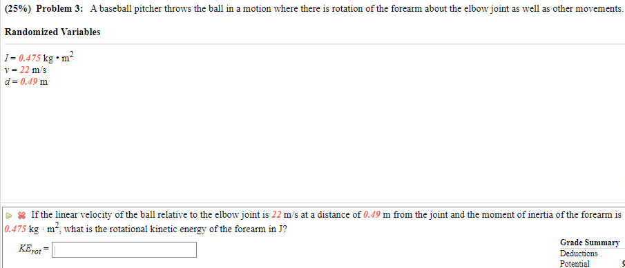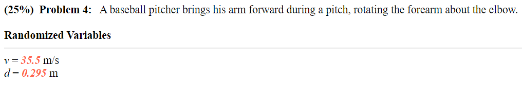 Solved (25 #92 %) Problem 4: A baseball pitcher brings his arm Chegg com