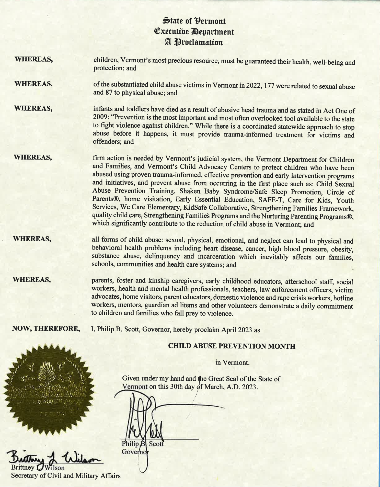 2023 Child Abuse Prevention Month Proclamation Ceremony Prevent Child