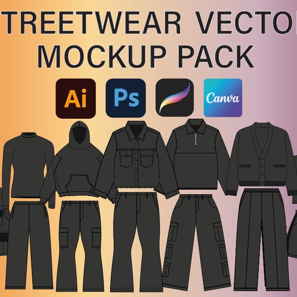 Oversize T Shirt Blank Mockup Procreate PNG Template Streetwear Tech