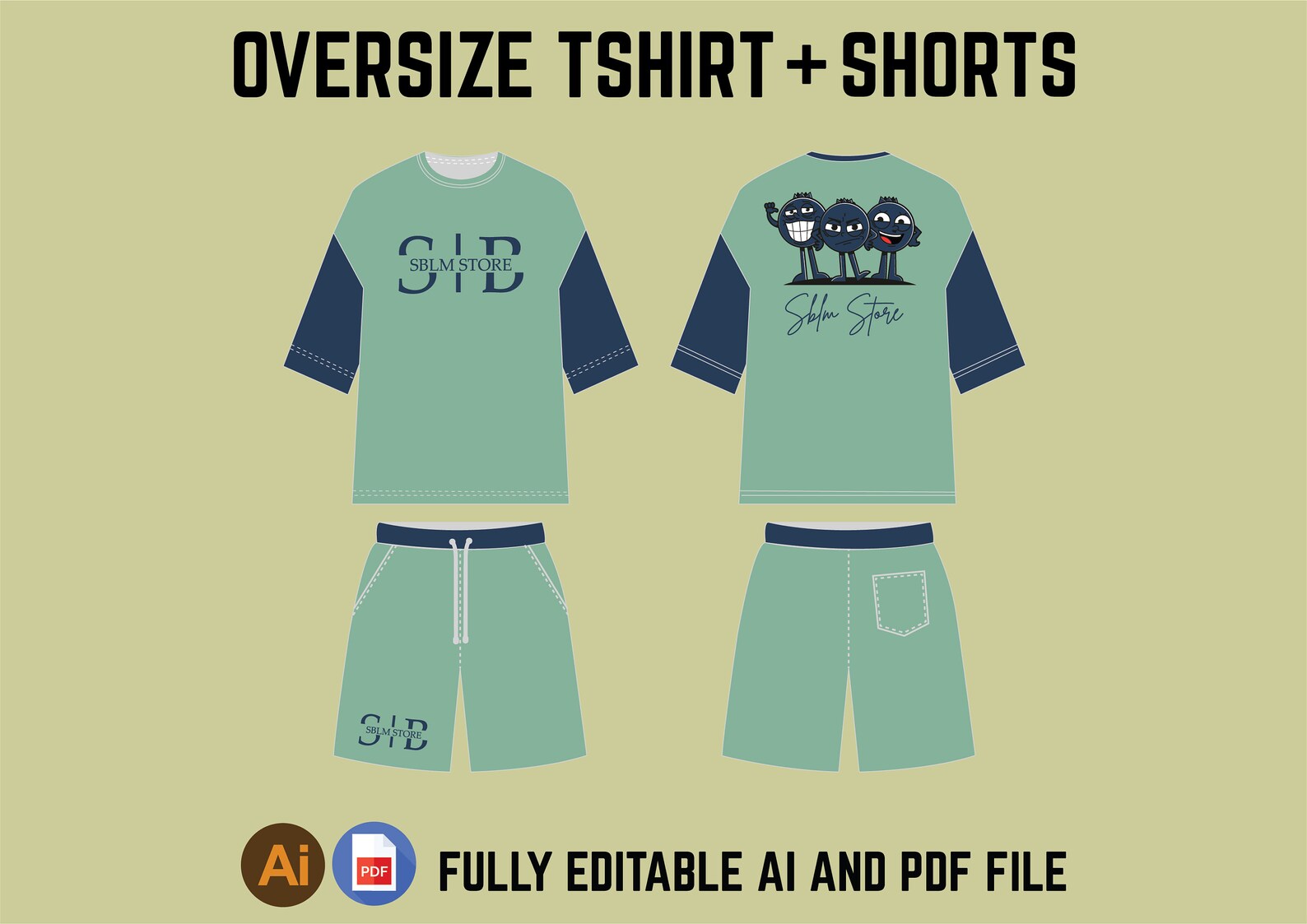 Oversize Tshirt With Shorts Digital Mockup Tempalte Vector Ai Editable