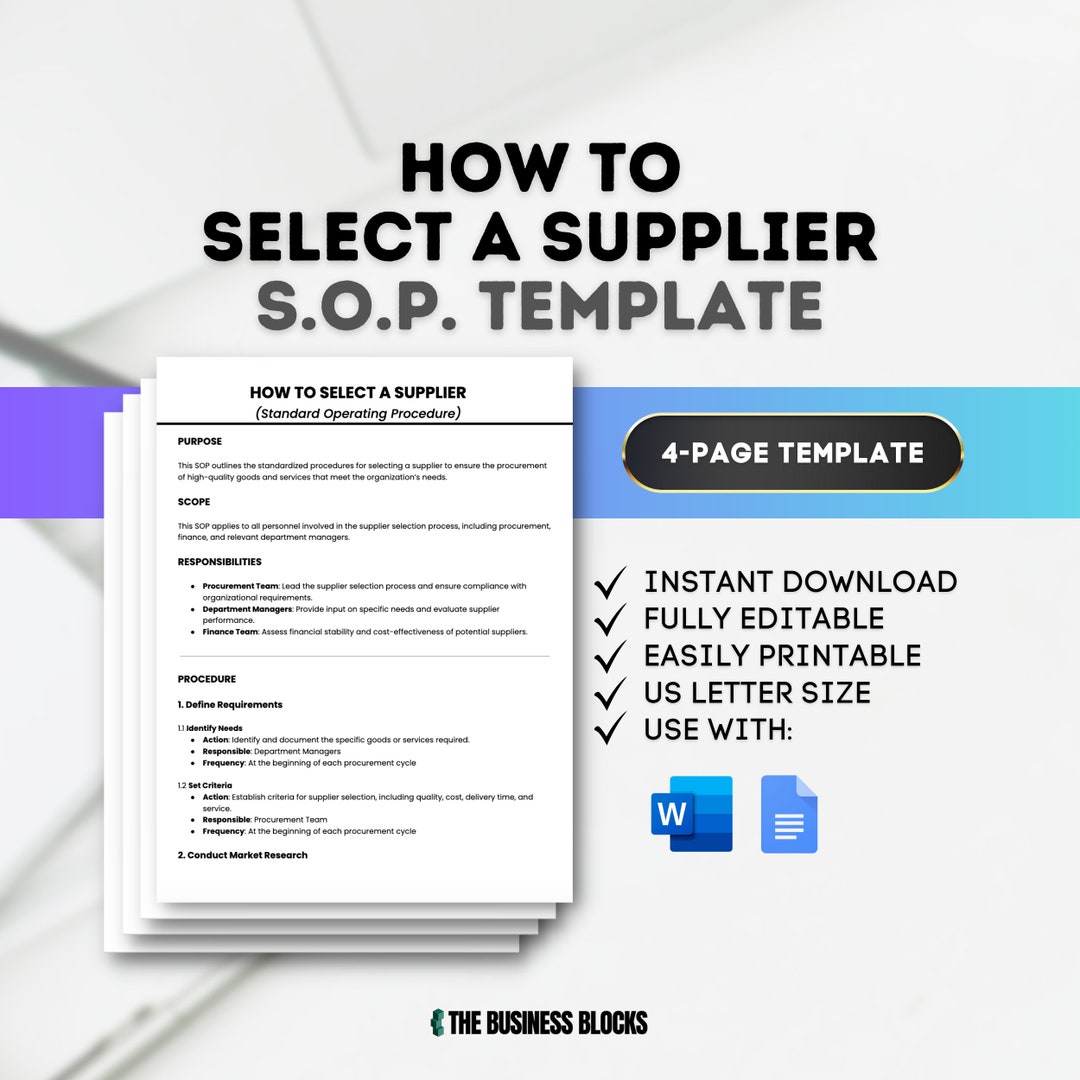 How to Select a Supplier SOP Template Supplier Selection SOP Guide for