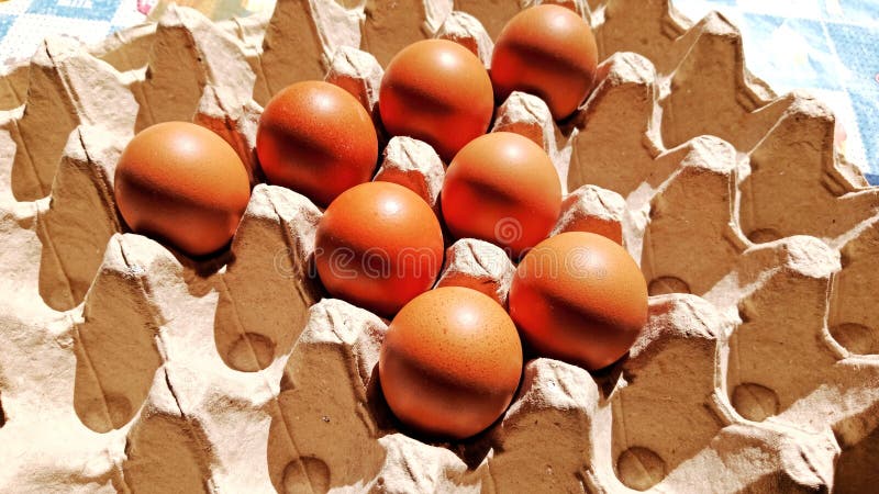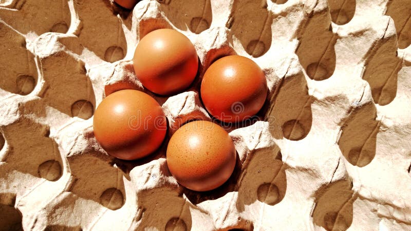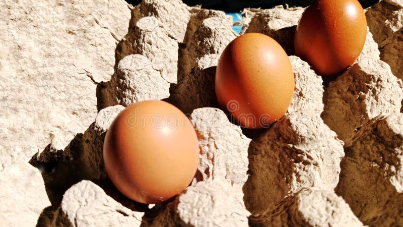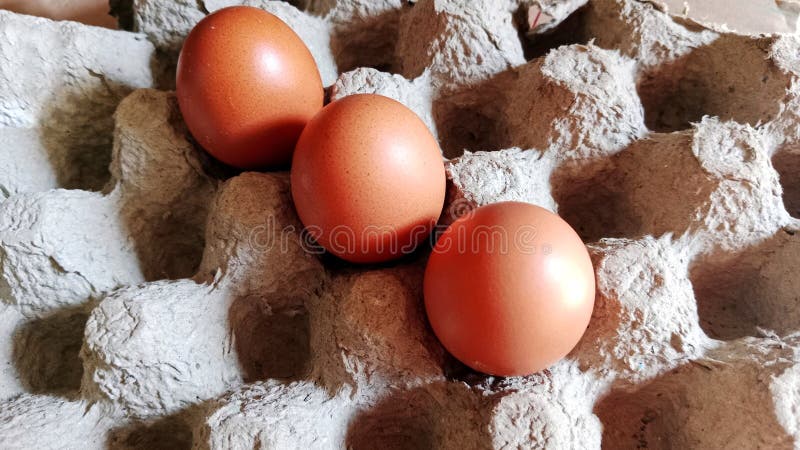 Fresh Eggs Produce on the Grey Cardboard Egg Tray Stack and Group of