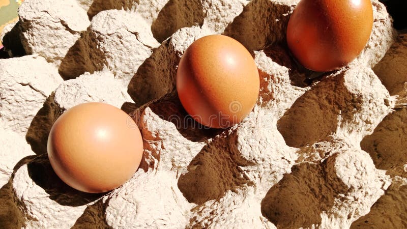 Fresh Eggs Produce on the Empty Grey Cardboard Egg Tray Stack and