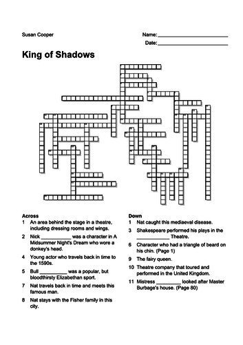 King of Shadows Crossword Teaching Resources
