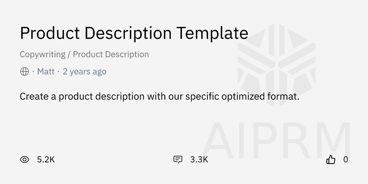 Prompt quot Product Description Template quot by quot Matt quot AIPRM for ChatGPT