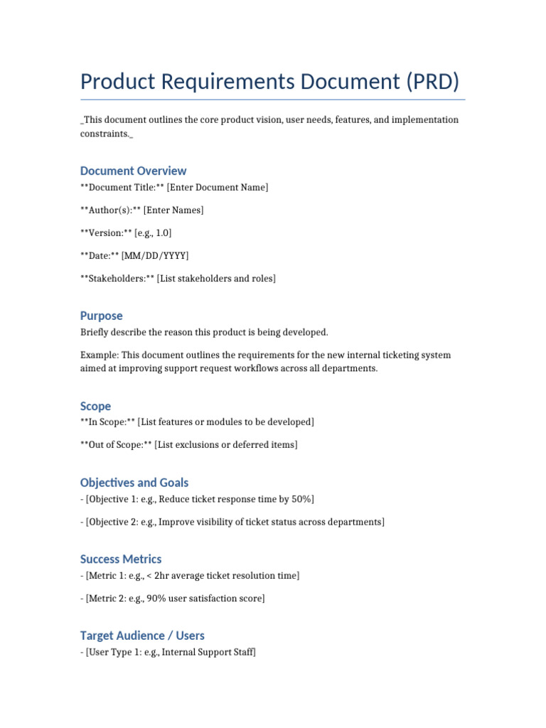 Product Requirements Document Template