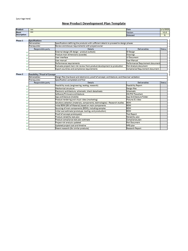 Sample Product Development Plan Excel Template And Google Sheets File