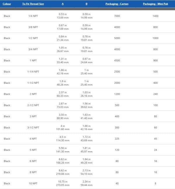 BACKING RING TABLE D Irrigation Unlimited