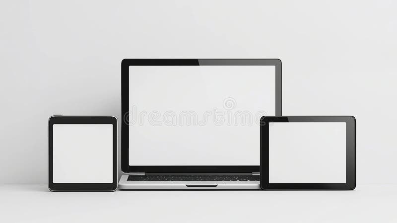 Computer and Tablets Mockup Screens on White Backdrop Ai Generated
