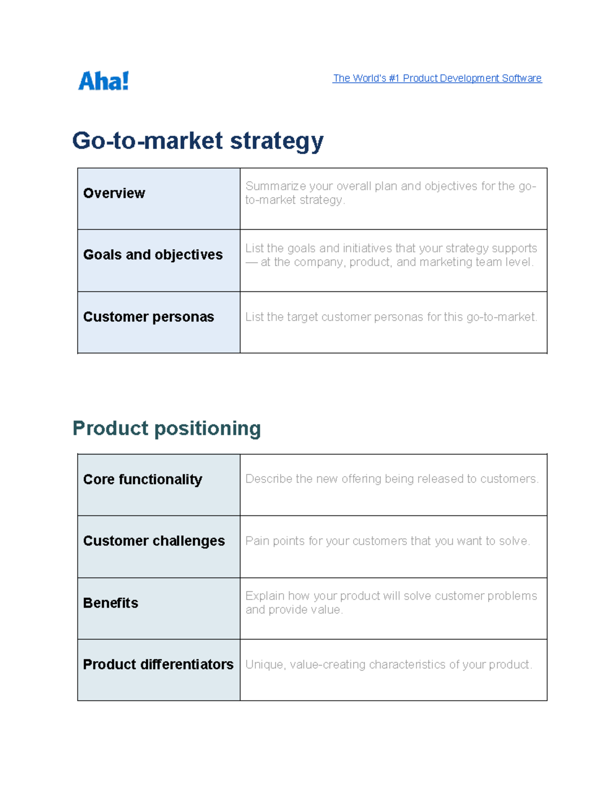 Product Marketing Document Template