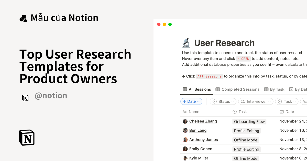 Top User Research Templates for Product Owners Thị trường mẫu Notion