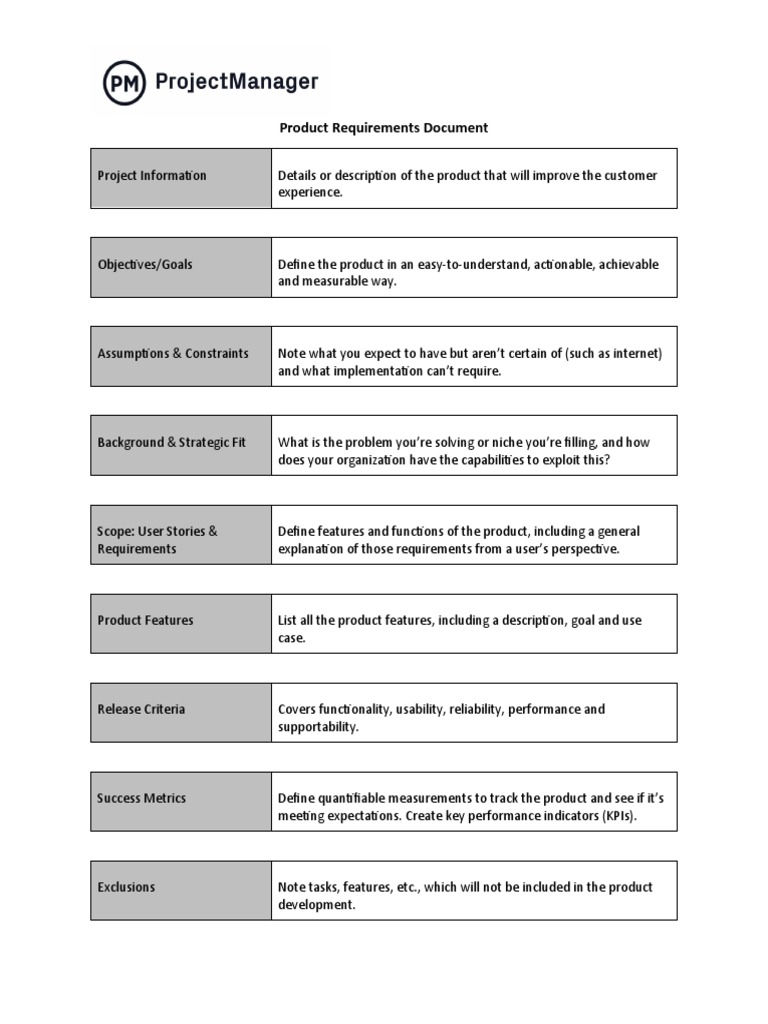 Product Requirements Document Template Word ProjectManager PDF