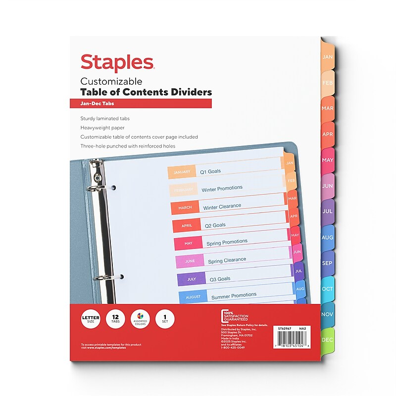 Staples Customizable Table of Contents Monthly Dividers 12 Tabs