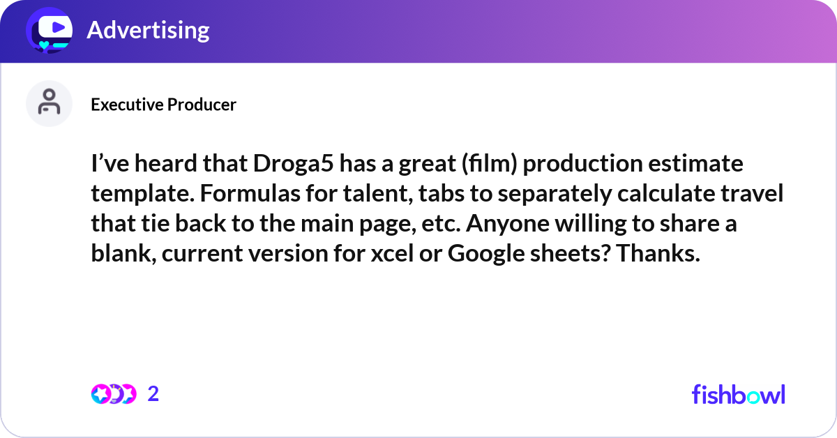 I ve heard that Droga5 has a great (film) producti Fishbowl