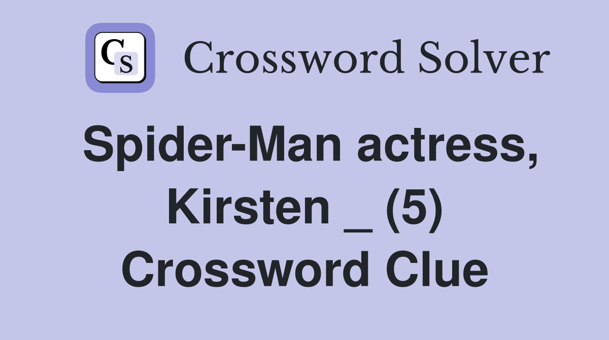Spider Man actress Kirsten (5) Crossword Clue Answers Crossword