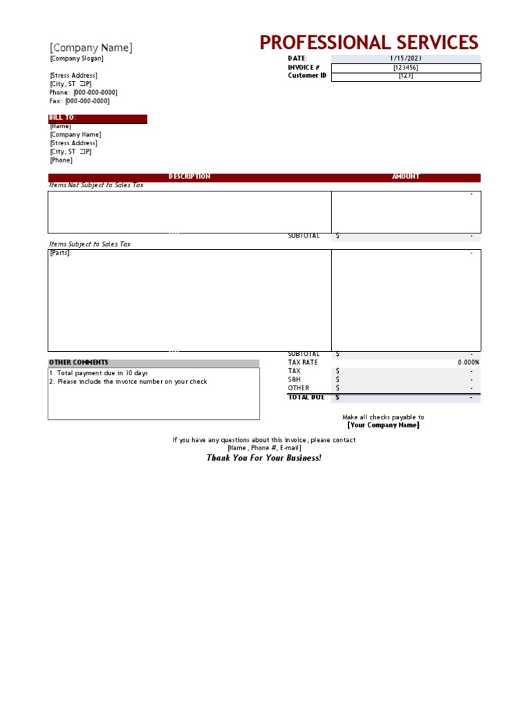 √ Professional Services Invoice Template