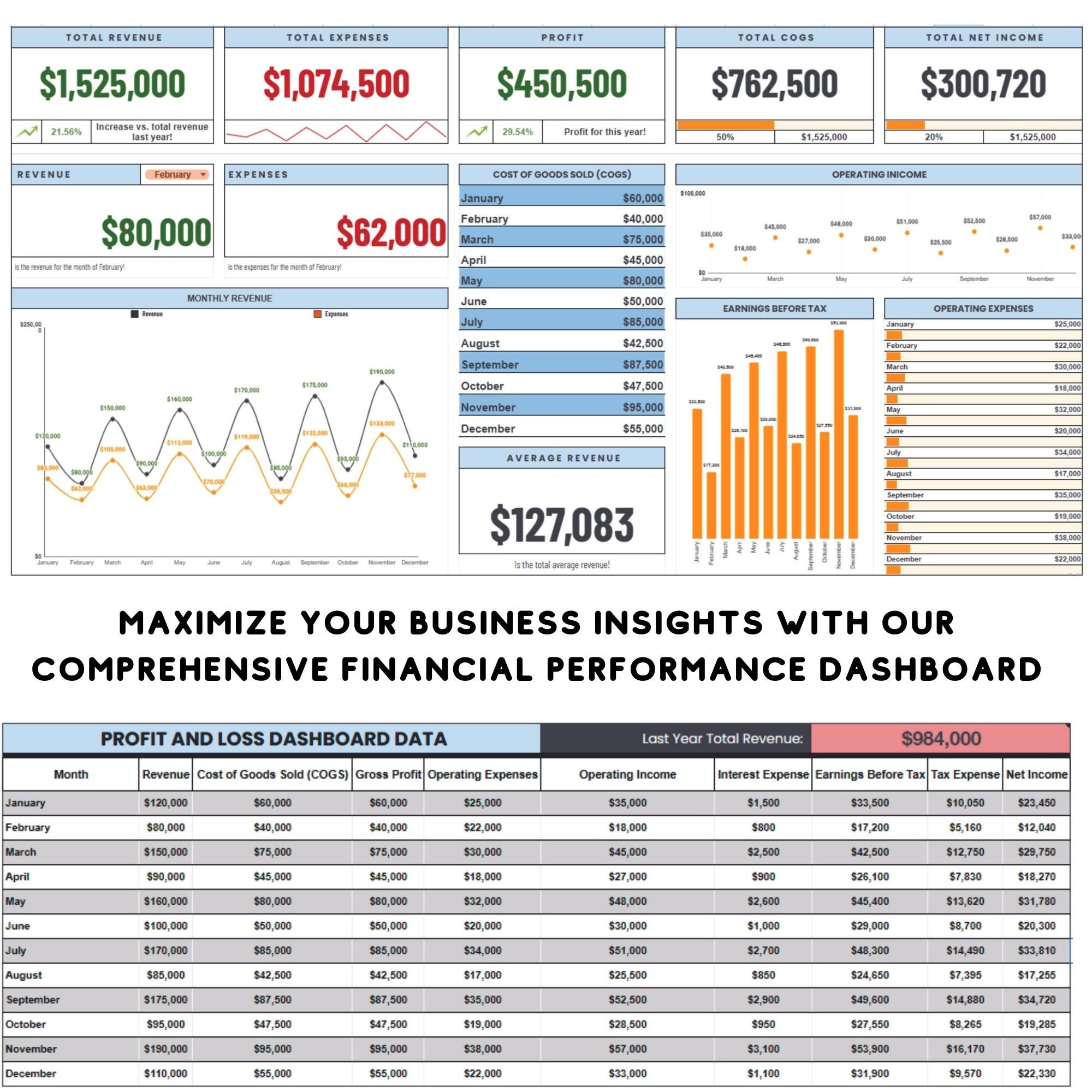 Profit and Loss Dashboard Template Editable Easy to Use Digital