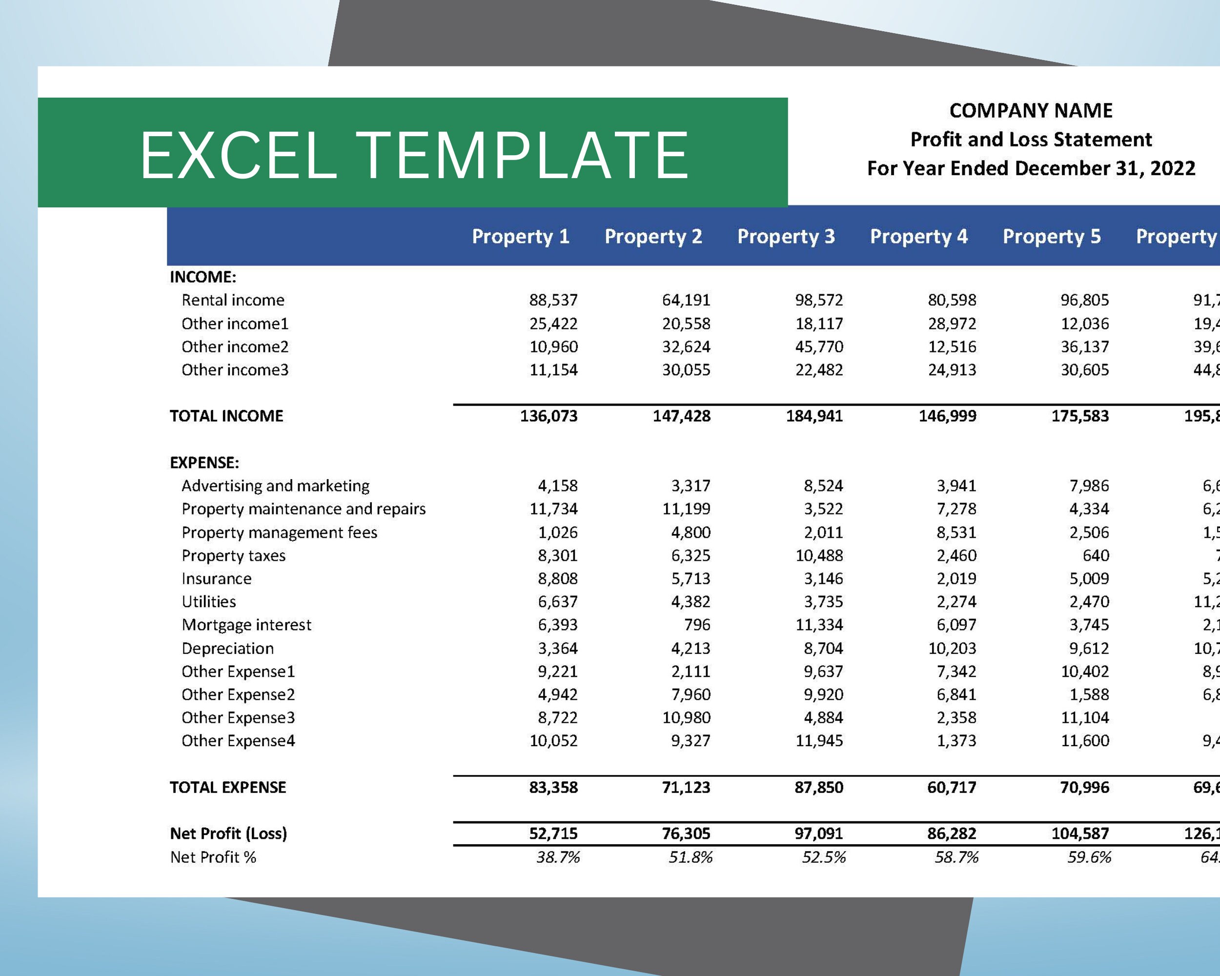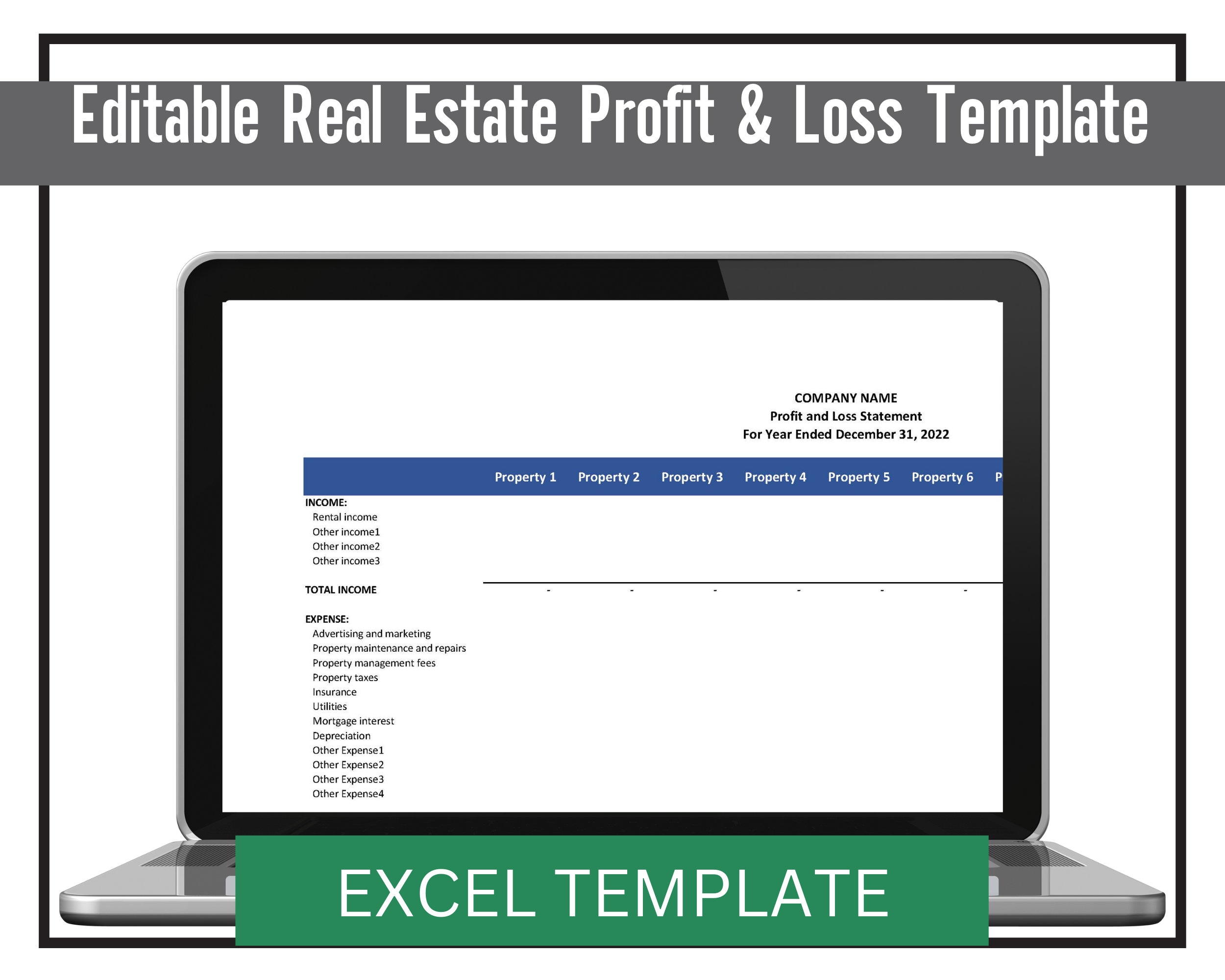 Real Estate Excel Profit and Loss Statement Template Profit Etsy