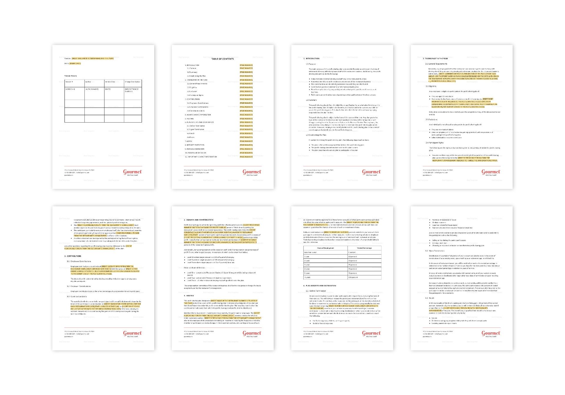 Restaurant Profit Sharing Plan Template Google Docs Word Apple