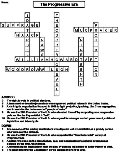 Progressive Era Crossword Puzzle Crossword Crossword puzzle Review