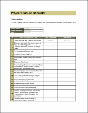Project Closeout Checklist Edit Online Download Example