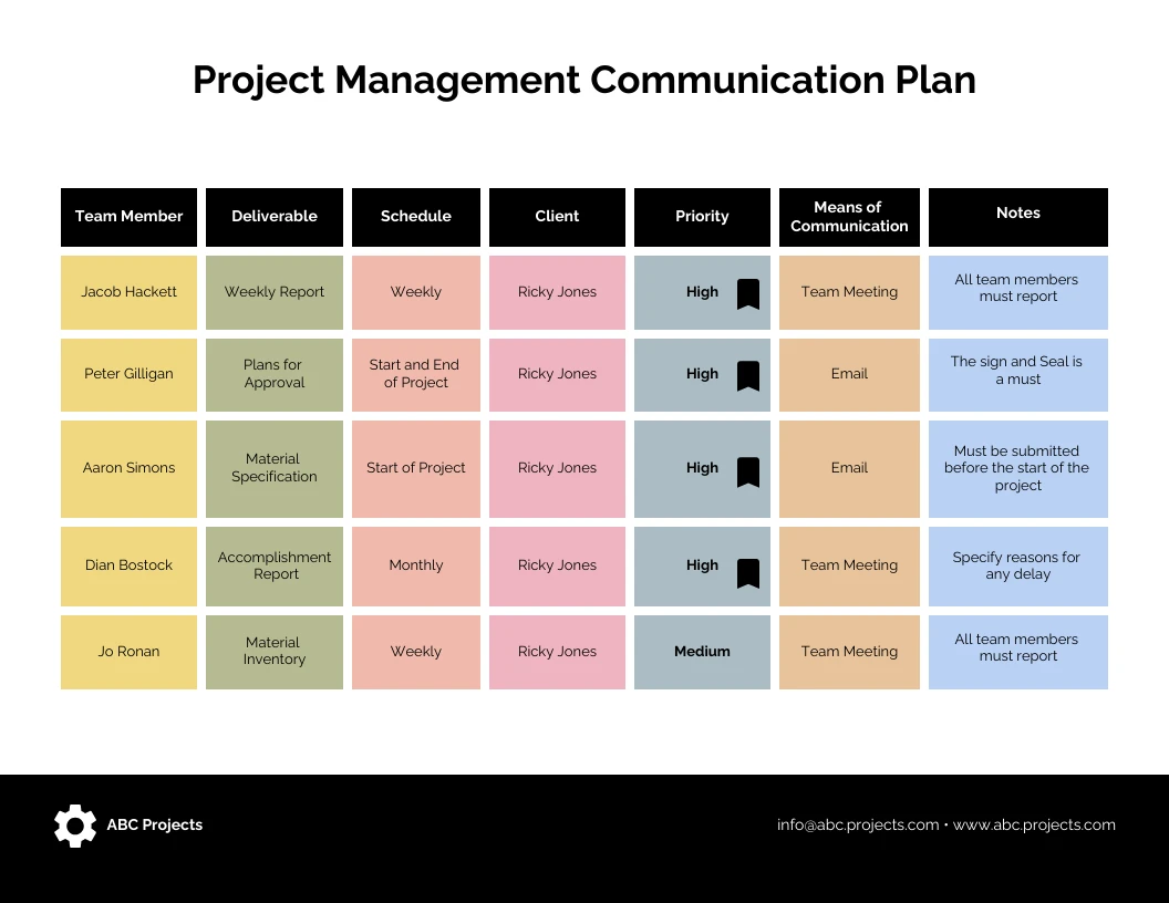 Pastel Color Project Communication Plan Template Venngage