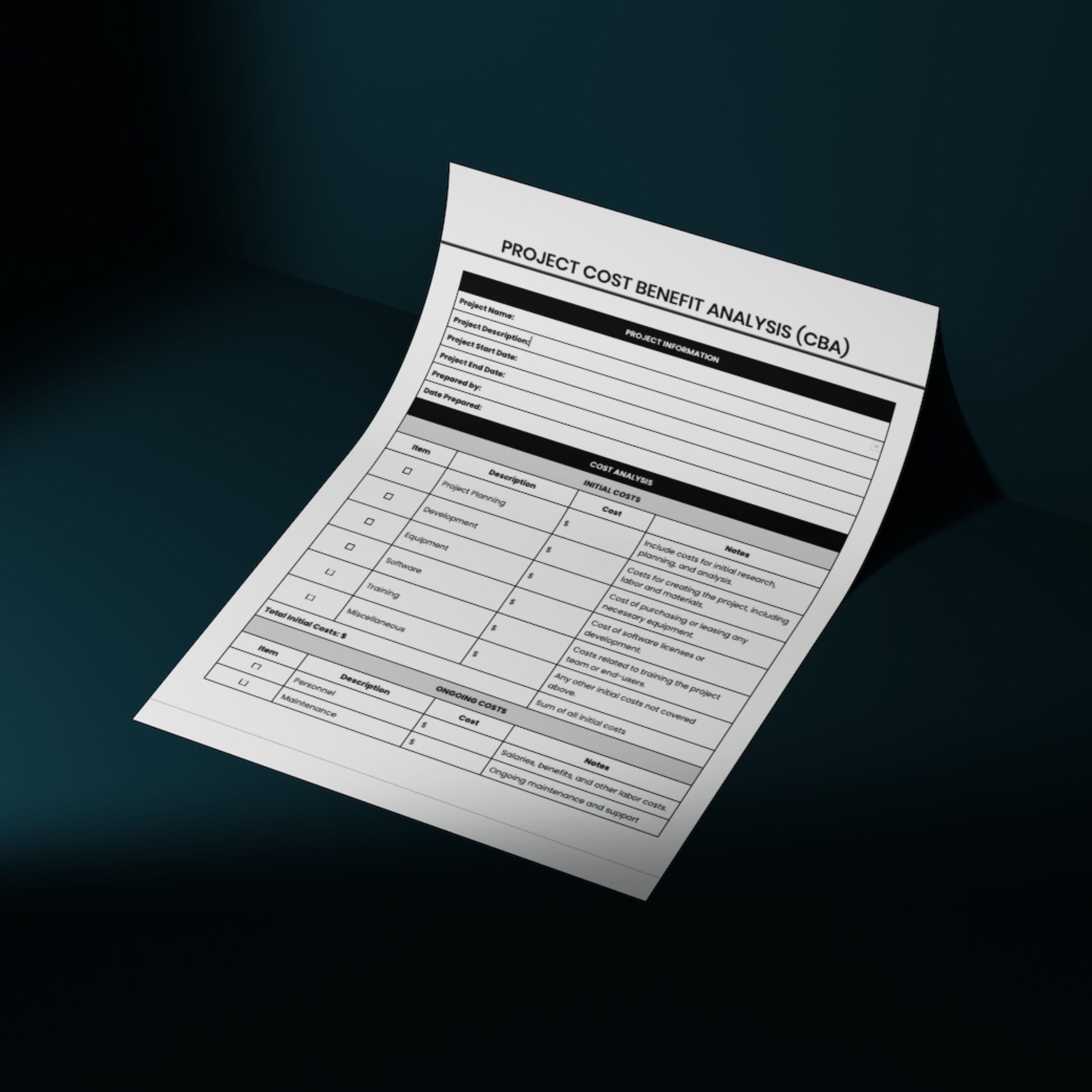 Project Cost Benefit Analysis Template: ROI Financial Analysis