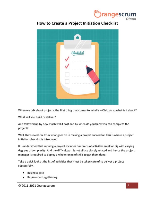 Project Initiation Checklist PDF Free Download