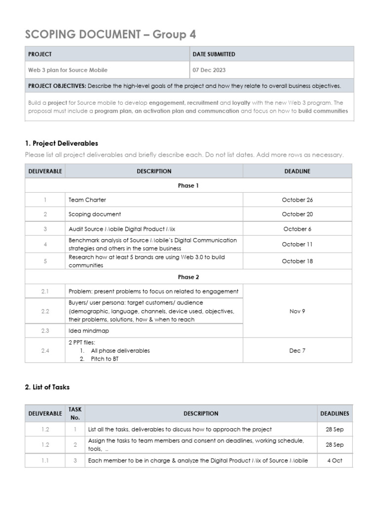 Scoping Document Group 4 Digital Project Management PDF